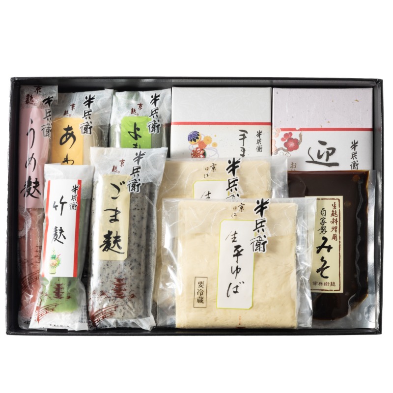 | 内容量 | あわ麸、よもぎ麸、ごま麸、 うめ麸、竹麸、迎春なま麸、手まり麸(6個入)、田楽みそ(赤)、生平ゆば×2 |