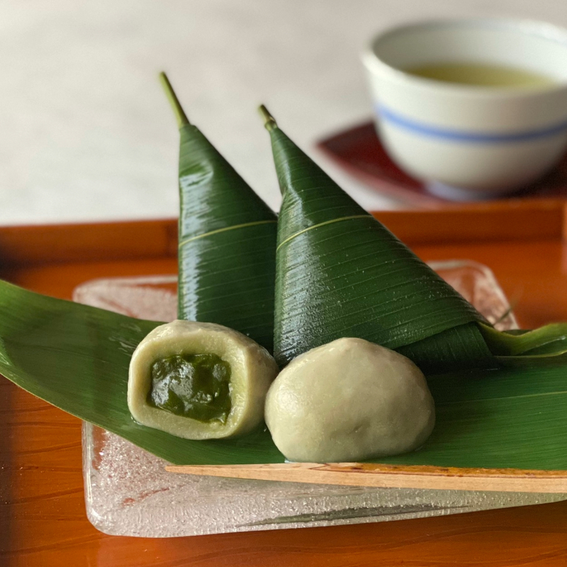 抹茶あんを、抹茶風味のなま麸で包み、みずみずしい笹の葉で巻いた麸まんじゅうです。