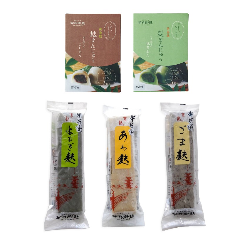| 内容量 | 230gあわ麸、230gよもぎ麸、230gごま麸、笹巻麸こしあん3個入箱、笹巻麸抹茶あん3個入箱 |