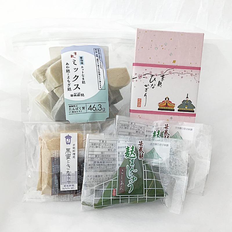 | 内容量 | ひなかざり麸、カットなま麸ミックス(あわ・よもぎ)、笹巻麸(こしあん)×2、黒蜜×3、きなこ×3 |